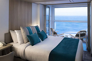 Prime Edge Stateroom with infinite Veranda are located in the most-desirable locations on the ship. These incredible staterooms take our standard veranda stateroom and, with the touch of a button, blur—even erase—the boundaries between inside and outside living space. Your entire living space becomes the veranda, letting you walk right out to the water’s edge. This brilliant innovation gives you luxurious open air access to the sea, whenever you wish. Edge series Staterooms offer the latest technology that allows you to precisely adjust nearly every comfort feature in your stateroom. The in-room automation allows you to control everything from lighting, to shades, to temperature, and service with a simple touch screen. You can even choose a setting that will tuck you in and gently wake you in the morning. It’s world-class service at the touch of a button. Not only do these staterooms feature the latest in design and technology, but they’re even more spacious. In fact, they’re 23% larger than our award-winning Celebrity Solstice® Class veranda staterooms. The added space allowed us to include a luxurious king-sized bed from our new Cashmere Bedding CollectionTM. Bigger rooms called for larger bathrooms, too. So, we expanded them almost 20% and included even larger modern showers.Ample indoor and outdoor space come together to create your private sanctuary at sea. Your personal veranda lets you greet the day, enjoy fresh sea breezes, and soak in breathtaking sunsets.Infinite Verandas on Edge SeriesThe most transformational aspect of our stateroom design is the introduction of the Edge Stateroom with Infinite Veranda®, where with the touch of a button, your entire living space becomes the veranda, letting you walk right out to the water’s edge. These staterooms feature the latest in design and technology, and they’re 23% larger than our award-winning Solstice® Series veranda staterooms.170 possible options of connecting staterooms make it easier than ever for families and friends to connect at sea. Combine two adjoining Edge Staterooms with Infinite Verandas to become one. Or connect the Edge Single Stateroom with Infinite Veranda, with a Deluxe Porthole View with Veranda, to create the perfect space for an accompanying grandparent, nanny, or in-law.Another first for us: 99% of the staterooms on Celebrity Edge® have king-size beds featuring Celebrity eXhale® bedding and Cashmere℠ Mattresses.These incredible staterooms take our standard veranda stateroom and, with the touch of a button, blur—even erase—the boundaries between inside and outside living space. This brilliant innovation gives you luxurious open air access to the sea, whenever you wish.Infinite VerandaWith the touch of a button, your entire living space becomes the Veranda.Storage SpaceWe’ve optimised the space in your wardrobe and bathroom and doubled the capacity of your dresser drawers.MyTVGet live TV, video on demand, ship information, and your folio. Display content from any mobile device that has streaming Wi-Fi service.ConnectionsCombine staterooms in 178 different options, making it easy for friends and family to stay connected.In-room AutomationControl everything from lighting to shades to temperature—with a simple tap on a touch screen.Celebrity Cruises AppUse your own personal smartphone for keyless entry, controlling the TV, and in-room automation.King-sized BedRelax on a luxurious, breathable, hypoallergenic, eucalyptus-treated, ecofriendly Cashmere Mattress with Celebrity eXhale bedding.BathroomEnjoy room to roam—10% more room than our Solstice Series—with a larger modern shower, custom products, and 100% cotton towels and robes.AmenitiesPlush 100% cotton bathrobes and towelsFour pillows in every stateroomPremium Custom blended bathroom productsCelebrity Shopping bagStateroom FeaturesPrivate veranda opens up to outdoor seatingFloor-to-ceiling windows and glass doors.King-sized mattress** (Single Infinite Veranda has Queen-size bed)Celebrity eXhale® beddingPlentiful storage space in your bathroom and wardrobeIn-room Automation on Edge SeriesSome staterooms may have a trundle bedInteractive television systemMini-fridge*Individual safeDual voltage 110/220 ACHair dryerServicesTwice daily housekeeping serviceOur signature friendly, personalised service with a guest to staff ratio of nearly 2:1Laundry service*Complimentary beach towel serviceFresh ice delivered to stateroom upon requestDiningComplimentary breakfast, lunch, and dinner available in a variety of restaurants24-hour room service†*Additional charges apply**Bed as large or larger than average standard international king-size bed† $9.95 service fee and 18% gratuity may apply