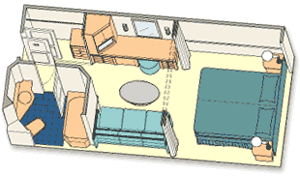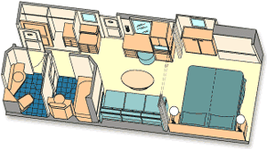 A Disney Cruise Line Deluxe Inside Stateroom is a relaxing and roomy retreat on the high seas, providing plush comforts in an environment decked in elegance. A deluxe room offers you more space for family activities and relaxation than is offered in a standard room.Find a perfect blend of luxury and down-home comforts within your Deluxe Inside Stateroom. Sprawl across the cushions of a beautifully upholstered couch to watch television or first-run movies, or enjoy your morning coffee and daily news at a handsome desk. Fetching nautical fittings and furnishings set the mood for a true high seas escape.When night falls, a cosy bed is waiting for you, with a privacy curtain separating the sleeping area from the activities in the seating area, so your family can rest or play with minimal disruption. You'll also enjoy the convenience of a split bath with a tub, shower and 2 separate sinks, extra storage space, and of course, unparalleled Disney service from dawn to dusk.