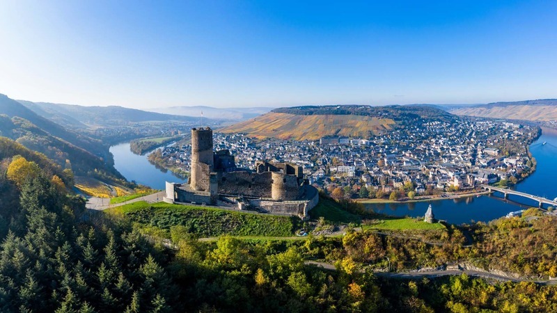 A well known wine growing centre situated on the Mosel River. In the centre is the Market surrounded by color-washed half-timbered houses and the remains of medieval walls including the Ender Gate built in 1332. The well-restored castle which looms above the town was severely damaged in 1689 during the "Orleans War" of 1688-97.