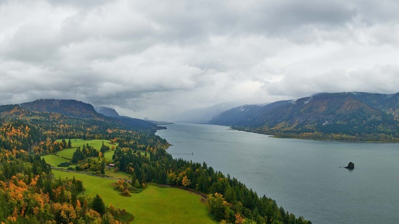 The Columbia River Gorge is a spectacular river canyon cutting the only sea-level route through the Cascade Mountain Range. It's 80 miles long and up to 4,000 feet deep with the north canyon walls in Washington State and the south canyon walls in Oregon State.