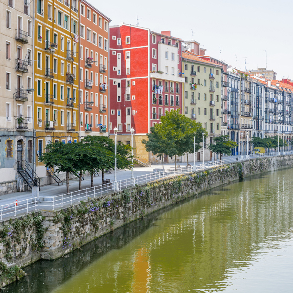 Bilbao, capital of Provincia de Vizcaya in northern Spain, consists of old and new sections connected by several bridges spanning the Rio Nervion. The old part of the city occupies the east bank of the river, and its modern offshoot, dating from the late 19th century, sits opposite. In 1983 a flood severely damaged the old section of Bilbao, but it has since been restored.