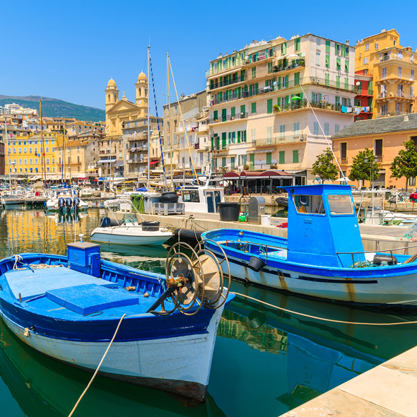 Corsica’s northern capital, Bastia, is the center of commerce and industry and a thriving freight and passenger port. Commerce, more than tourism, is its main focus, providing employment for many Corsicans. Bastia’s industrial sprawl is offset by its aged charm. The presence of an overwhelming Italian character adds to the city’s attraction. Two distinct areas comprise the city:Terra Vecchia, the old quarter with its haphazard streets and flamboyant Baroque churches, and the more orderly Terra Nova, representing the administrative core of old Bastia.