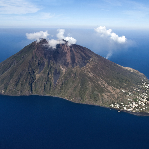 Stromboli is a small island in the Tyrrhenian Sea, containing one of the active volcanos in Italy. It is one of the Aeolian Islands, a volcanic archipelago north of Sicily.