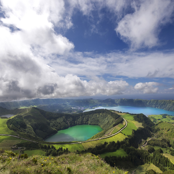 The Azores Islands are located in the Atlantic Ocean, about two hours flying time and 930 miles (1500 Km) from Lisbon. The origin of the name Azores was derived from the archaic Portuguese word "azures" the plural of the word blue. Some say that it was named after the goshawk bird (Acor in Portuguese). However, since such bird never existed in the Azores, most historians have concluded that this the least probable explanation.
