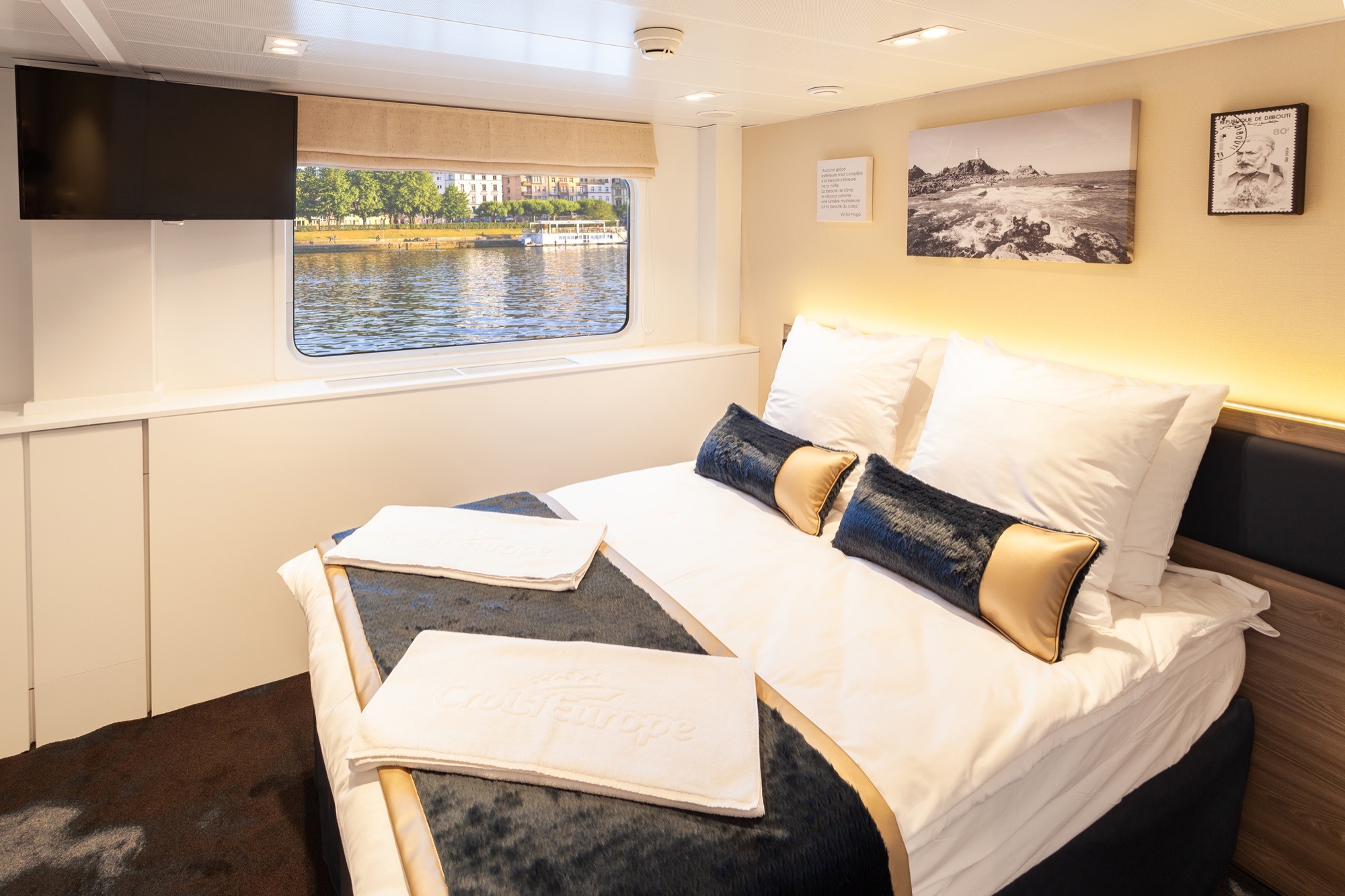 The MS Victor Hugo sails on the Tisza, Elbe, Danube and Rhine. First built in 2000 but then refurbished in 2019, she provides 45 double cabins to just 90 passengers, providing an intimate setting with stunning views of many UNESCO World Heritage Sites.