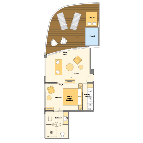 Located on the Jewel Deck both suites feature a full-length outdoor balcony with the exclusive ‘Sun Lounge’ system.