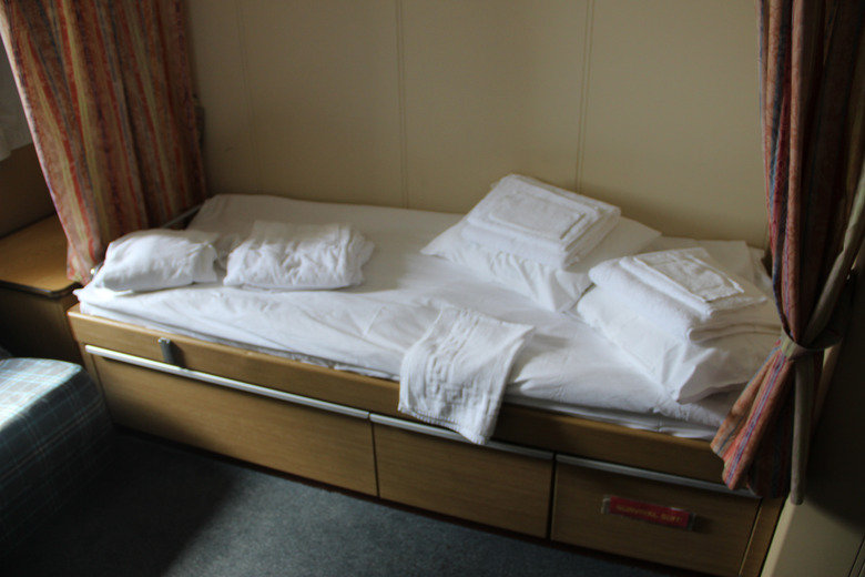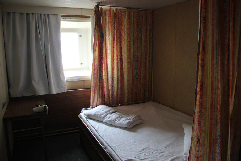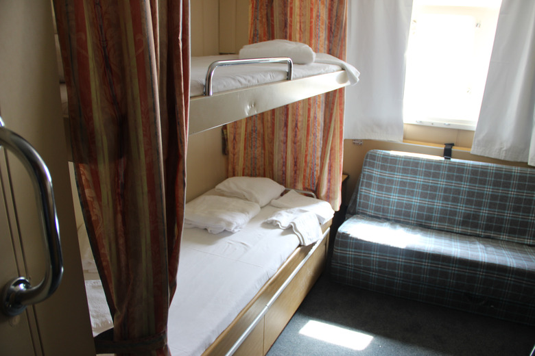 The twin cabins come with one lower berth and one sofa bed. All twin cabins feature a large opening window, writing desk and chair, private facilities with shower, as well as wardrobe and storage shelves for your personal belongings. Average cabin size is 15.5 ft X8.9 ft (4.7 m X 2.7 m).