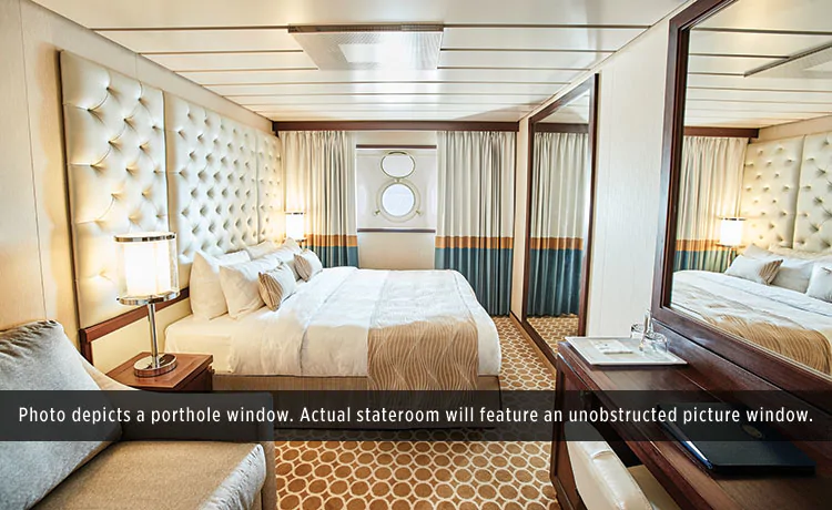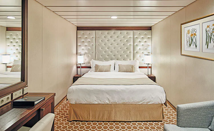 Photos, floor plan diagrams, and amenities represent typical arrangements and may vary by ship and stateroom. Certain staterooms may vary in size, decor and configuration. Stateroom views are considered unobstructed unless noted otherwise. Obstructions do not include certain nautical items like handrails, dividers or ship hardware. For balcony staterooms, the view is determined from the perspective of the balcony railing. If an accessible cabin is required but none is shown then please call for assistance.