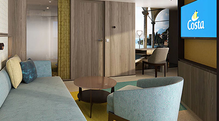 Multiply your benefits when you book a suite: your comfortable and exclusive space on board. A Costa Suite is your private Oasis