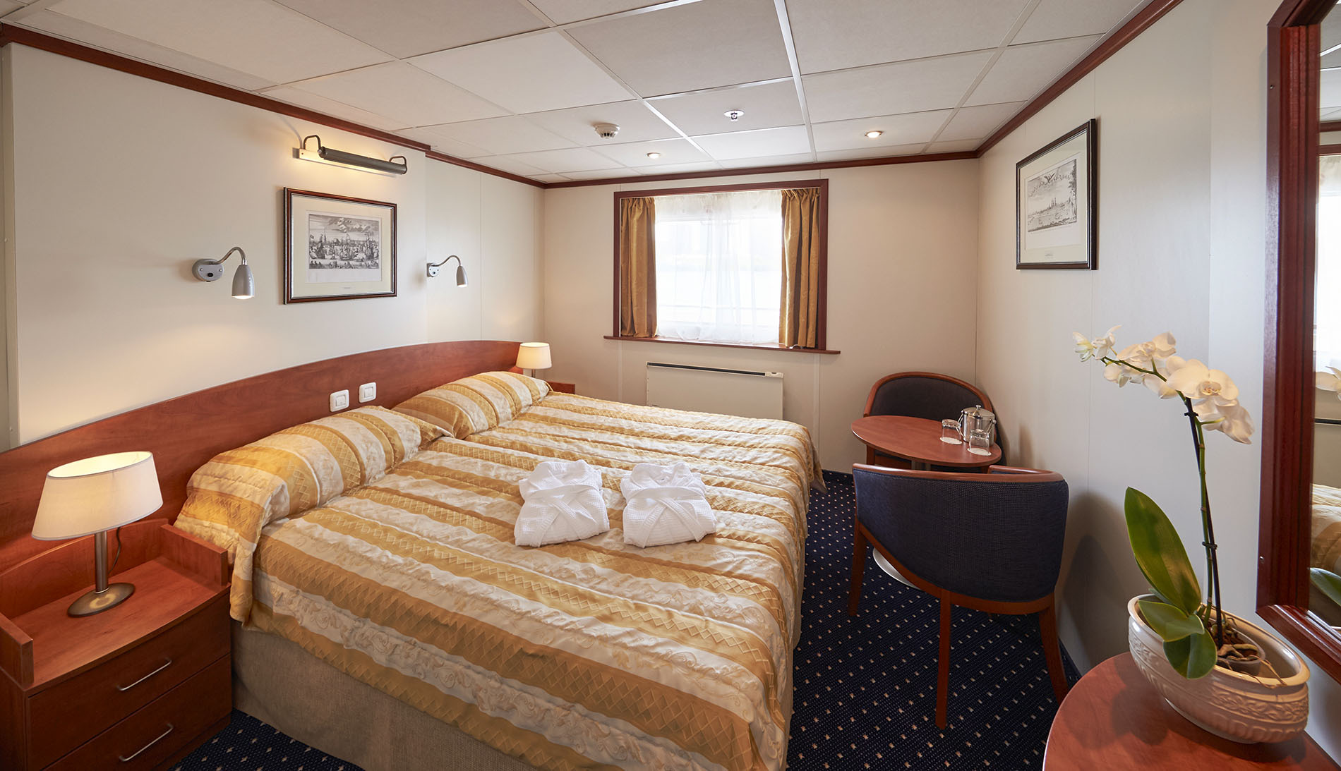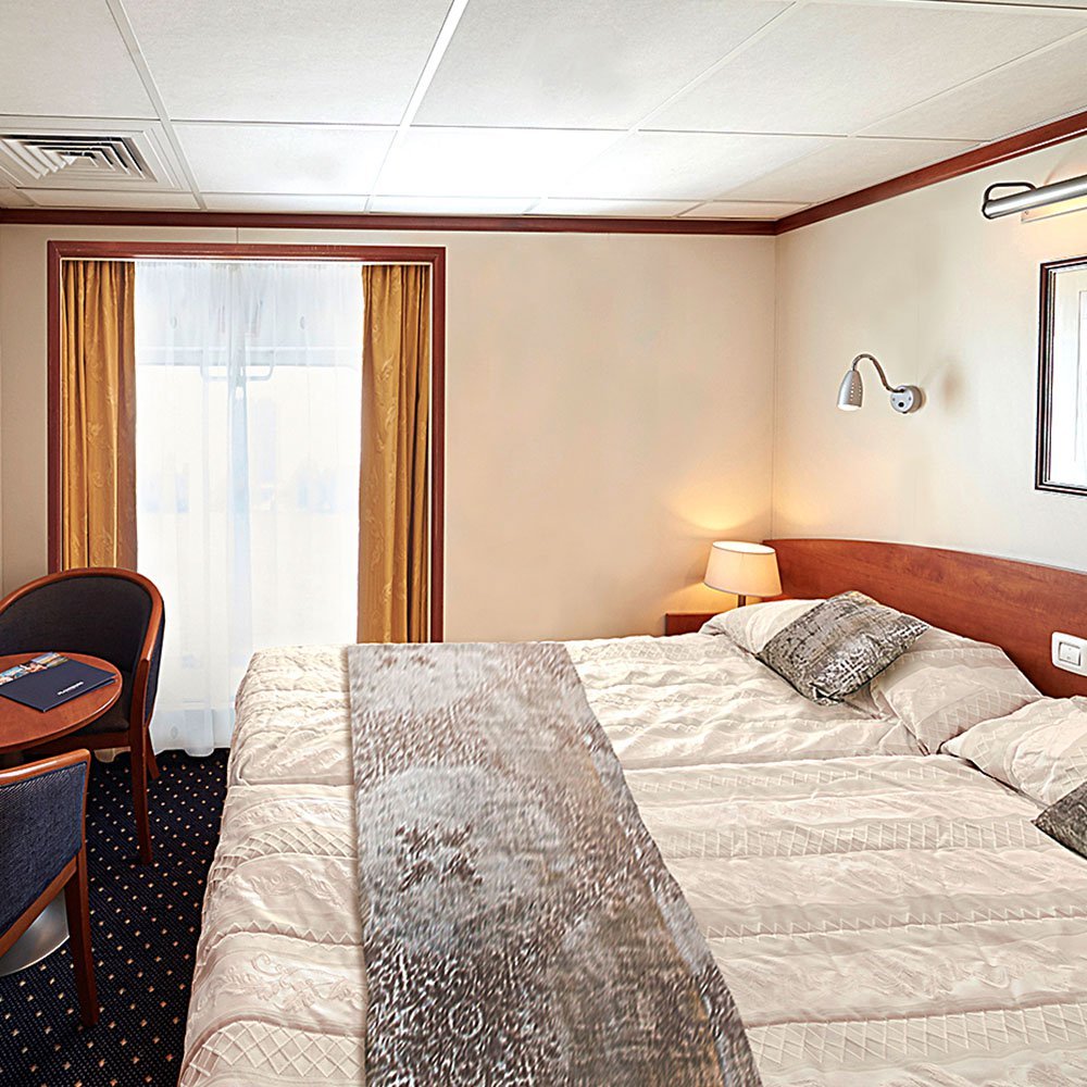 A fantastic selection of modern amenities encourage you to truly settle into your home away from home. You will find a restaurant serving Russian influenced European fine-dining, the Tsar Bar, where you can relax with your favourite tipple enjoying views of the unfolding scenery, the Tsar Bar is where you will find our complimentary WI-FI. On board we also have a library and a wellness centre, offering a range of sumptuous treatments. Enjoy complimentary beer, wine and soft drinks with lunch and dinner, and relax in your spacious cabin, complete with hotel-style bed, television and refrigerator, as your outside-facing window frames the beautiful scenery passing by.