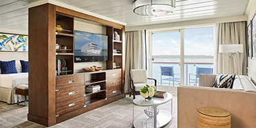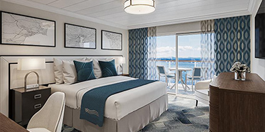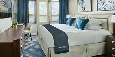 The 180-passenger American Symphony introduces an updated modern interior design, integrating an elegant and refined aesthetic with our tradition for the spacious comfort found aboard all of our ships. Drawing inspiration from the geography across America, the new interior design highlights natural textural elements and serene color palettes.