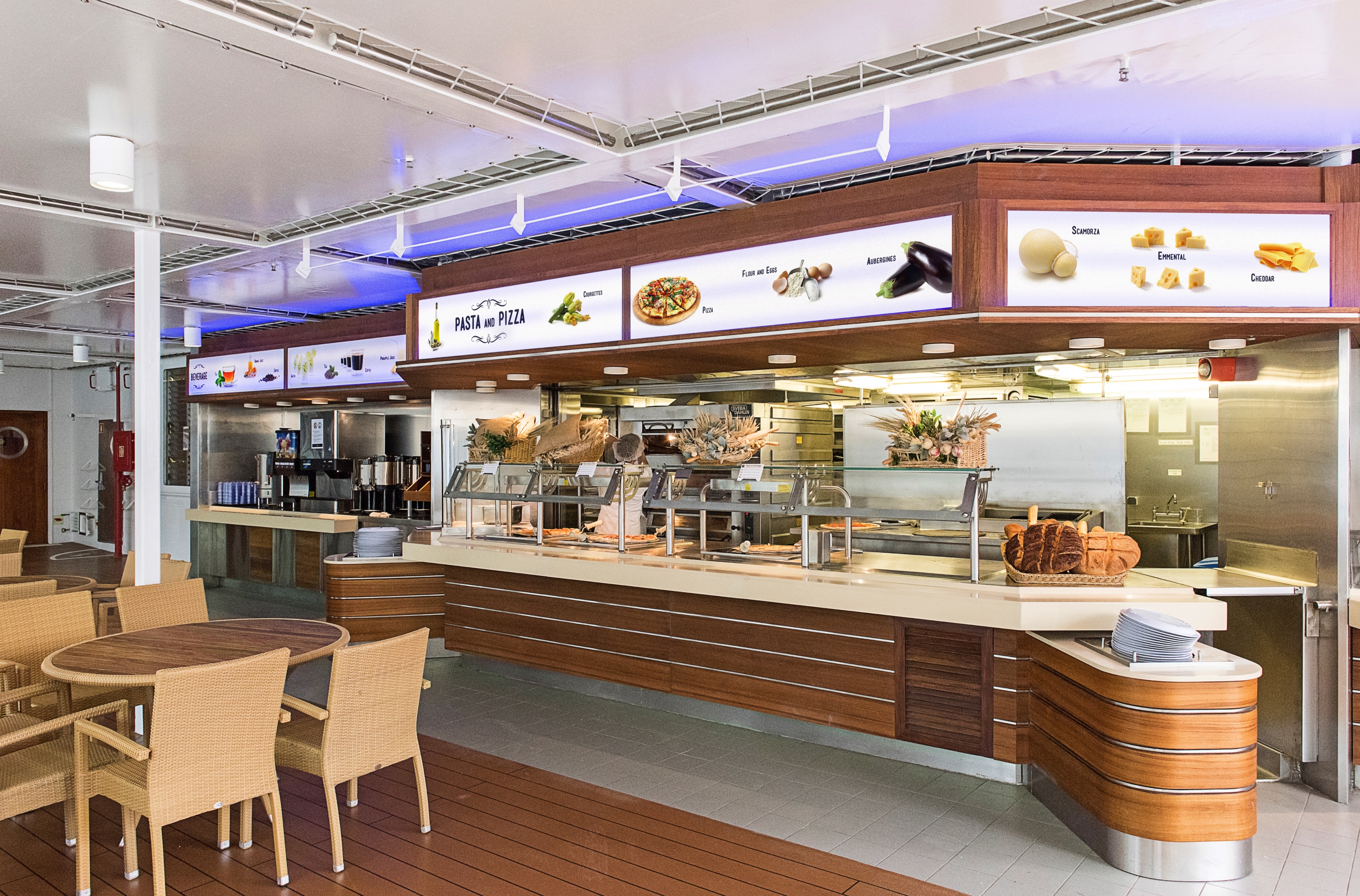 - For ever-changing menus of high-quality international cuisine, including signature dishes from award-winning chefs, look no further than the main restaurants onboard our ships. If you prefer a casual meal, buffet is open for breakfast, lunch, dinner and late night snacks.