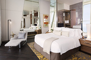 Two twin beds that convert to Royal King, private balcony, sitting area with double sofa bed. Bathroom with tub and double sink. Concierge service