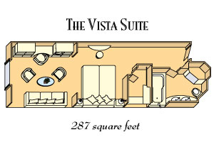 With a shared veranda, the Vista Suites provide an easy transition from peace and privacy to the energy and excitement of the onboard social scene.Guests can expect a large picture window providing panoramic views, twin beds or queen-sized bed, large picture windows framing panoramic ocean views, sitting area, a marbled bathroom with double-vanity, a separate shower and a full-sized bathtub. A walk-in wardrobe with personal safe is provided along with a Radio/alarm with iPod docking station, direct-dial telephone and a refrigerator and bar setup, stocked with your preferences. Pratesi® fine bed linens and down duvet covers, premium mattresses and a choice of pillows, Plush robes and slippers, choice of European bath amenities, vanity table with hair dryer, writing desk(s) with personalised stationery, binoculars, and umbrella, WiFi access, flat screen TV, on-demand movies, and satellite news, and dry cleaning and pressing service (fee applies).