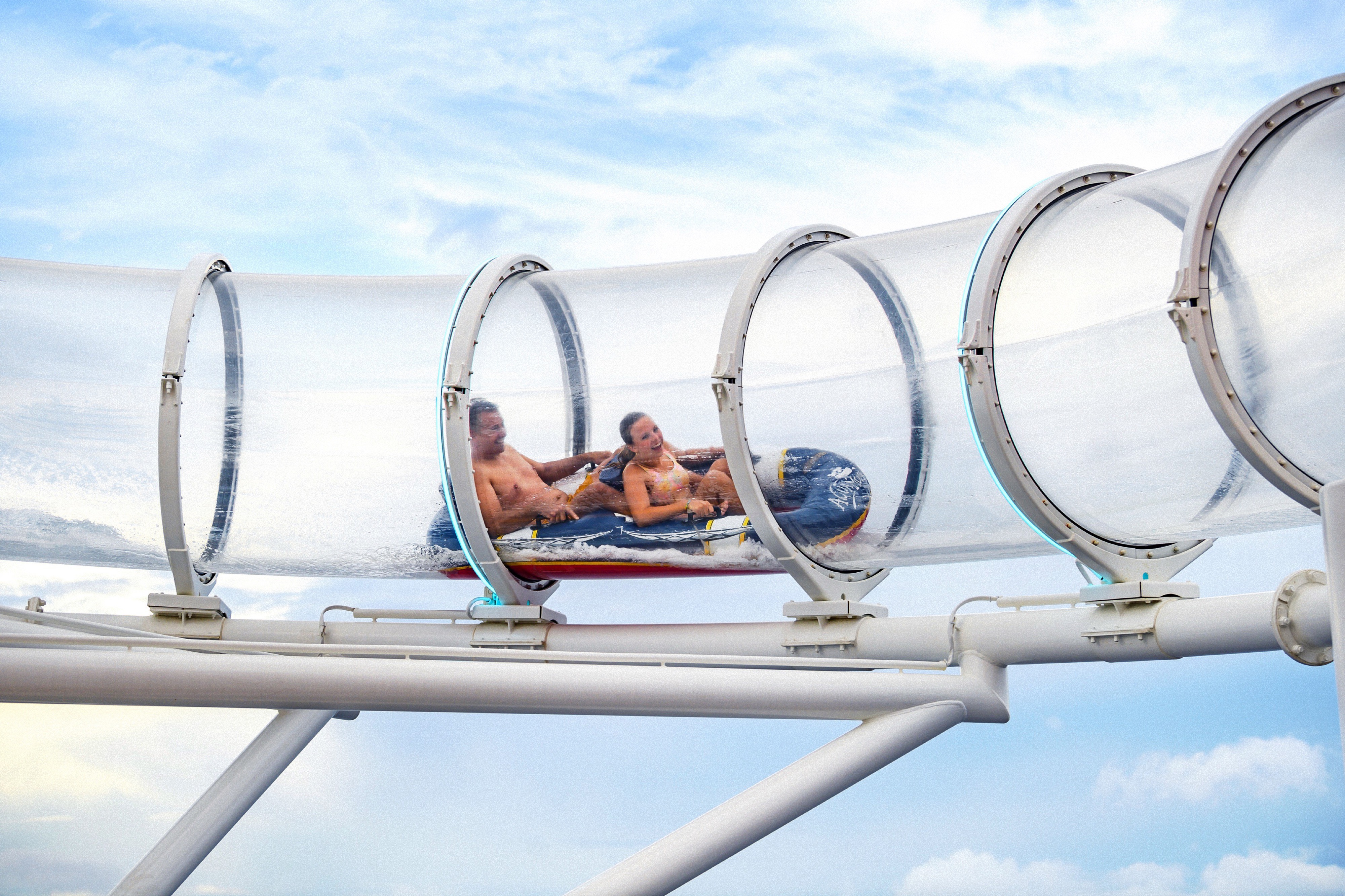 Oh boy! Join Mickey Mouse and Minnie Mouse on an all-new water-coaster adventure featuring Disney foes of lore like the Evil Queen, Scar and Chernabog. As you ride up Villain Mountain, sing along to animated scenes that quickly swing from menacing to silly. Then get ready for some incredible ocean views, special effects and water-soaked thrills as you plunge through winding tubes up, down and over the side of the ship.