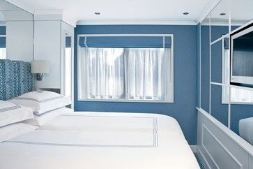 Lavishly appointed riverview staterooms and suites have handcrafted Savoir® of England beds draped in high-thread count 100% Egyptian cotton sheets and European duvets, along with a menu of pillow options. Staterooms and suites on the Rhine Deck have French balconies.