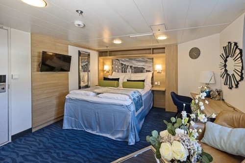 MS Polarlys was refurbished in 2016 and now features a modern, Arctic-inspired interior. On board are three different restaurants, the Multe bakery and ice cream bar, a sauna∘ and fitness room. Out on deck you can enjoy the view from one of our two hot tubs. We have a comfortable bar at the front of the ship where you can enjoy a nice traditional drink. The vessel also has a large compass area where you find the reception, the expedition team, conference room and shop.