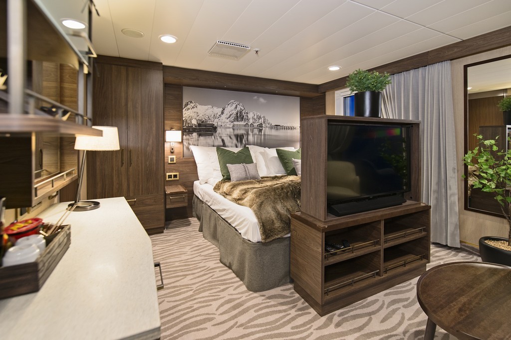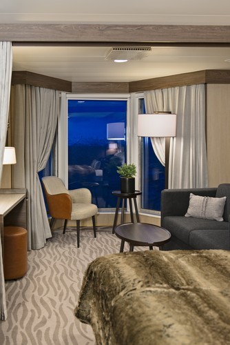 - All staterooms and suites are fully upgraded∘ to match Hurtigruten’s new standards. On deck 6, a number of cabins were merged into 14 larger suites, some with large bay windows and spectacular views.