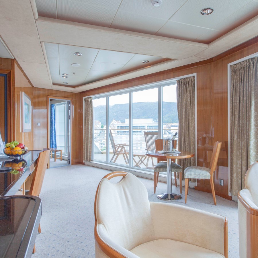 MS Trollfjord features modern comfort and facilities throughout. The ship hosts its own expedition team who present interesting∘ lectures both inside and out on deck. Have fun learning about the nature, wildlife, culture and history you see along the way. Topics depend on the season and where we sail in. MS Trollfjord's large, two-storey panorama lounge above the bow features wall-to-wall glass, allowing in lots of natural light and providing∘ extraordinary views of the passing scenery. The ship's sun deck and Jacuzzi are found on Deck 9. MS Trollfjord also exhibits original paintings that∘ were once aboard the old Hurtigruten ship, MS Harald Jarl.
