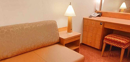 In addition to the normal services and equipment provided in all our cabins, Suite Guests enjoy special privileges to make their stay on board even more pleasant including a choice of pillow from the Pillow Menu, Whirlpool bath, bathrobe and slippers for guests to use throughout their cruise and a dedicated valet assigned to the room.
