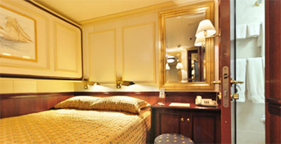 If you thought the exterior areas were impressive, you will be even more amazed by Royal Clipper’s interior spaces. Included in these is a three-deck atrium that enables sunlight to flood into the elegantly appointed, three-tiered dining room; featuring unreserved seating, meticulously prepared cuisine and an easy-going dress code which aims to make everyone feel included.