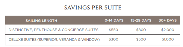 Applicable Sailings: All 2026-2028 sailings, excluding Grand Voyages, World Cruises, or Seven Seas Prestige Inaugural Season